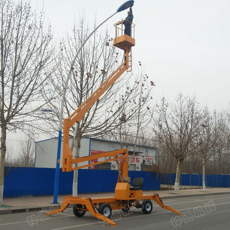 产品说明:曲臂式液压升降平台是垂直式、剪叉式曲液压升降平台的替代产品。曲臂式电动升降机利用柴油机为动力,加电瓶采用电启动,自支腿、自升降、自行走,360°旋转作业。曲臂式电动升降机具有操作简单,使用方便,作业面大,特别是能够悬伸作业,跨越一定的障碍物或在一处升降,可进行大范围多点高空作业的特点,极大地提高了工作效率。该系列曲臂式高空作业车广泛用于市政、电力、路灯、公路、码头、广告、园林、小区物业、厂矿企业车间等行业范围升降作业。