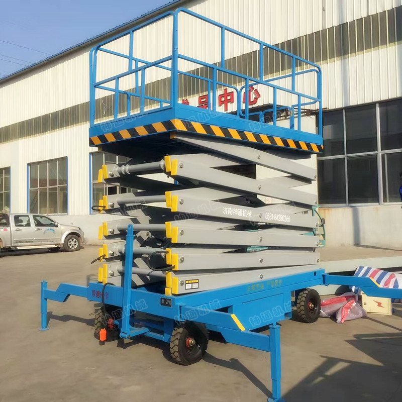 产品介绍:牵引式移动升降机为人工移动式,具有移动灵活、升降平稳、操作方便等特点。移动式液压升降平台其剪叉式结构,使平台具有较高的稳定性和较高的承载能力,而宽大的作业台面又可同时容纳多人作业。