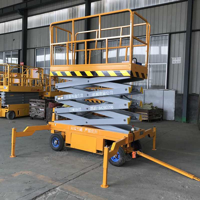 产品介绍:牵引式移动升降机为人工移动式,具有移动灵活、升降平稳、操作方便等特点。移动式液压升降平台其剪叉式结构,使平台具有较高的稳定性和较高的承载能力,而宽大的作业台面又可同时容纳多人作业。